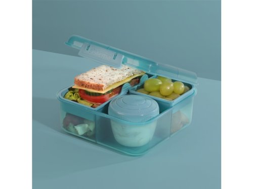 Krabička je ideální pro přenášení oběda, svačiny nebo salátu. Součástí krabičky je také nádoba na jogurt a dva tácky, pro jednodušší organizací vašeho jídla. Krabička má silikonové těsnění, které udržuje potraviny čerstvé. Vhodné pro mytí v myčce nádobí v horním koši.