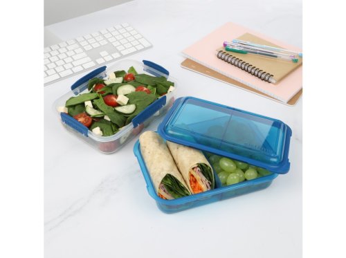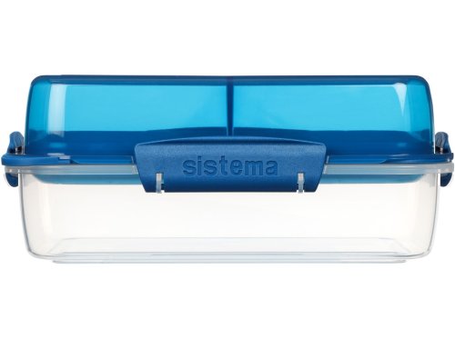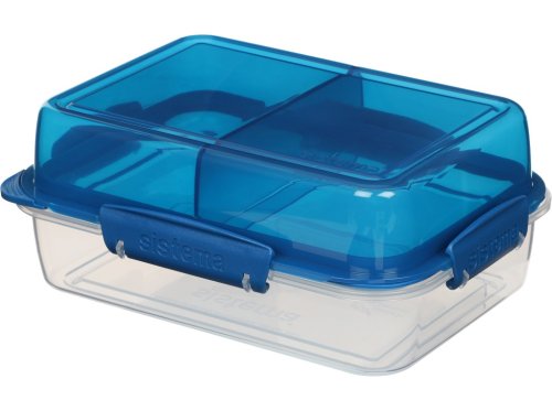 Krabička na svačinu s praktickým vnitřním uspořádáním. Krabička se skládá ze dvou částí (spodní a vrchní), z nichž jedna je rozdělena pevnou přepážkou na dvě poloviny. Spodní a vrchní část jsou oddělené vyjímatelnou přepážkou, kterou lze využít jako tácek nebo talířek. Vyjímatelná přepážka má po svém obvodu těsnění, které spolehlivě ochrání spodní i vrchní část krabičky. Vrchní (barevná) část se po zkonzumování obsahu dá vložit do spodní a zaklapnout zaklapávacími klipy Sistema. Lze tak ušetřit místo v batohu nebo tašce.