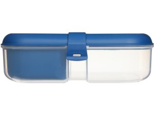 Krabička je ideální do práce, školy nebo parku a pomáhá omezit používání plastových sáčků. Součástí balení je také malá nádoba na jogurt, která je ideální pro přenášení müsli, ovoce nebo ořechů. Obsahuje pohyblivou dělenou přihrádku, která udrží vaše potraviny čerstvé a oddělené, dokud nejsou připraveny ke konzumaci.