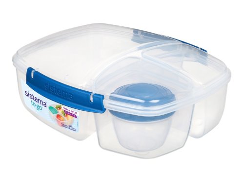 Krabička na obědy nebo svačiny s praktickým vnitřním uspořádáním. Součástí krabičky je také nádoba na jogurt, ovoce nebo pomazánku pro jednodušší organizaci vašeho jídla. Krabička je vyrobena z odolného plastu. Do krabičky se pohodlně vejde jídlo na celý den. Zůstane čerstvé a ihned po ruce. Vhodné pro mytí v myčce nádobí v horním koši.