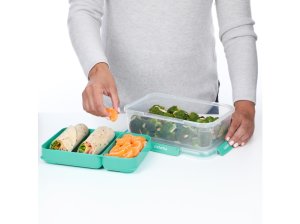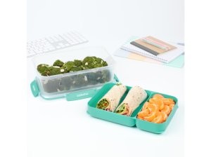 Sistema 2,2 l TO GO STAX je skvělou volbou pro všechny, kteří hledají praktický a stylový způsob, jak bezpečně přenášet jídlo do práce, školy i na cesty. Odnímatelný zásobník umožňuje oddělenní různých druhů potravin, takže si můžete vychutnat čerstvou a chutnou svačinu kdykoli a kdekoli. Stohovatelný tvar zajišťuje maximální využití prostoru ve spíži, chladničce a mrazničce. Snadno uzavíratelné klipy Sistema® a pružné těsnění udržují potraviny déle čerstvé.