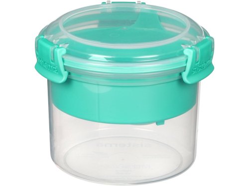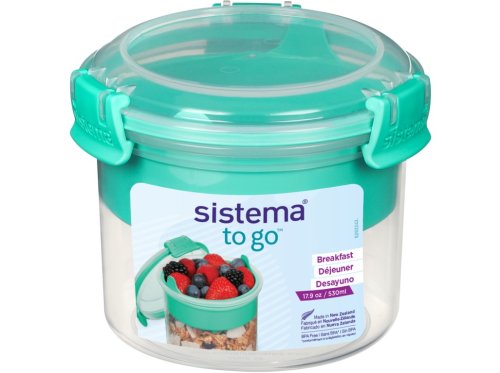 Sistema TO GO 530 ml s vnitřní oddělenou miskou a lžičkou je chytrý a praktický pomocník pro všechny, kteří si chtějí vzít zdravou snídani nebo svačinku do práce, do školy nebo na výlety. Praktický tvar umožňuje ukládat odděleně různé druhy potravin a promíchat je těsně před konzumací. Ve spodní části můžete uložit třeba jogurt, v horní jakoukoliv vhodnou přísadu (müsli, ovoce, sušené plody nebo cereálie). Díky přiložené lžičce můžete svoje oblíbené pochoutky konzumovat kdekoliv. Stohovatelný tvar zajišťuje maximální využití prostoru ve spíži, chladničce a mrazničce. Vhodné pro mytí v myčce nádobí v horním koši.