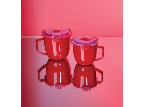 Díky speciálnímu ventilu můžete ohřívat i nádoby s nasazeným víčkem. Předejdete tak ušpinění a pracnému čištění mikrovlnné trouby. Ouško nádoby je navrženo tak, aby poskytovalo pohodlný úchop a umožňovalo snadné přenesení bez popálení z mikrovlnné trouby až na stůl. Tento produkt není vodotěsný.