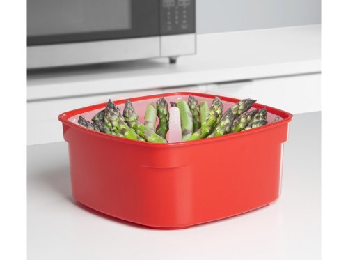Krabička je ideální pro vaření zeleniny, ryb a drůbeže v páře, čímž zachovává nutriční hodnoty a přirozenou chuť surovin. Krabička se skládá z napařovacího koše a víka s ventilem pro uvolňování páry. Použití je snadné, stačí nalít vodu do krabičky, vložit suroviny do napařovacího koše, zavřít klipy a vařit v mikrovlnné troubě. Vhodné pro mytí v myčce nádobí v horním koši. Tento produkt není vodotěsný.