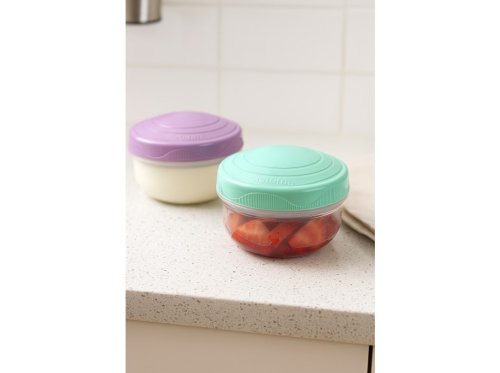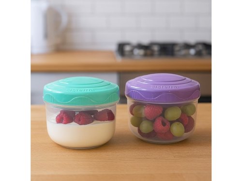 Praktické kelímky Sistema o objemu 150 ml, dodávané v sadě po dvou kusech, jsou perfektní pro bezpečné přenášení menších porcí ovoce, salátu, omáčky či jiných dobrot. Kelímky jsou vhodným doplňkem klasických svačinových boxů. Vhodné pro mytí v myčce nádobí v horním koši.