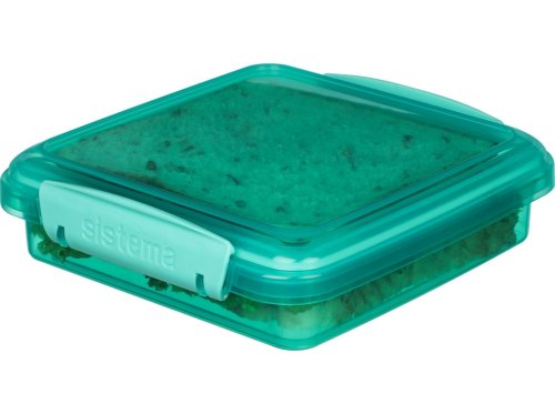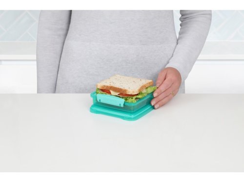 Díky inovativnímu designu s modulárním stohovatelným tvarem, snadno uzavíratelnými klipy a pružným těsněním, tato krabička umožňuje udržet sendvič čerstvý a chráněný až do doby konzumace. Vhodné pro mytí v myčce nádobí v horním koši.