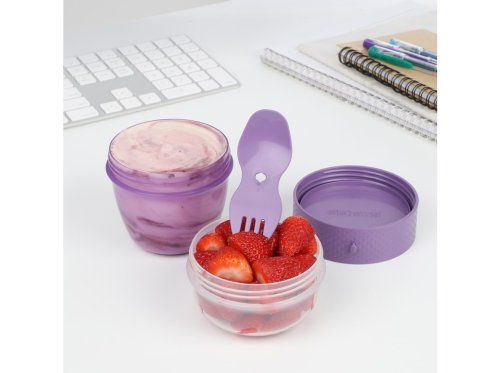 Sistema® 515 ml TO GO™ Snack Capsule se 2 přihrádkami a vidličkou/lžičkou je chytrý a praktický pomocník pro všechny, kteří si chtějí vzít zdravou a chutnou svačinku nejen na cesty. Praktický tvar pohárku umožňuje ukládat odděleně různé druhy potravin a promíchat je těsně před konzumací. Ve spodní části můžete uložit třeba jogurt, v horní jakoukoliv vhodnou přísadu (müsli, ovoce, sušené plody nebo cereálie). Díky přiložené vidličce/lžičce můžete svoje oblíbené pochoutky konzumovat kdekoliv. Stohovatelný tvar zajišťuje maximální využití prostoru ve spíži, chladničce a mrazničce.