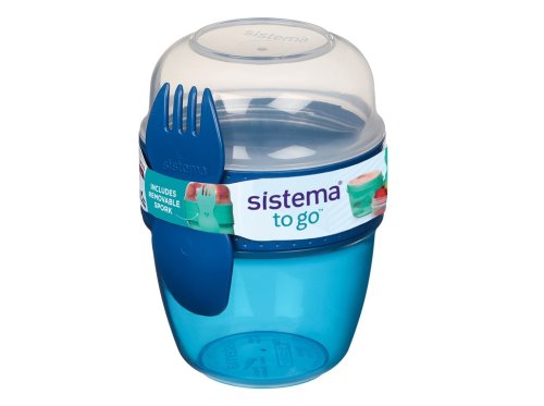 Sistema® 515 ml TO GO™ Snack Capsule se 2 přihrádkami a vidličkou/lžičkou je chytrý a praktický pomocník pro všechny, kteří si chtějí vzít zdravou a chutnou svačinku nejen na cesty. Praktický tvar pohárku umožňuje ukládat odděleně různé druhy potravin a promíchat je těsně před konzumací. Ve spodní části můžete uložit třeba jogurt, v horní jakoukoliv vhodnou přísadu (müsli, ovoce, sušené plody nebo cereálie). Díky přiložené vidličce/lžičce můžete svoje oblíbené pochoutky konzumovat kdekoliv. Stohovatelný tvar zajišťuje maximální využití prostoru ve spíži, chladničce a mrazničce.