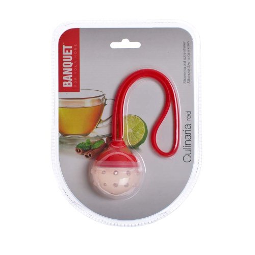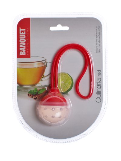 Silikonové sítko na čaj a koření CULINARIA red, rozměry: průměr 5 cm, délka včetně rukojeti 22 cm. ajové sítko je nepostradatelným pomocníkem pro louhování sypaného čaje, šálek oblíbeného druhu kvalitního čaje si snadno připravíte a vychutnáte. Silikon je velmi populární materiál, který pro své jedinečné vlastnosti našel své uplatnění i v kuchyni. Vyrábí se z něj různé druhy forem na pečení, vály a válečky na těsto, stěrky, mašlovačky, různé druhy kuchyňské náčiní a mnohé další výrobky.