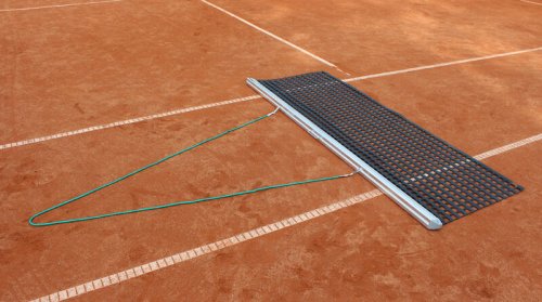 Síťovačka Extra dvojitá s hliníkovou lištou je vhodná na údržbu antukových dvorců. Tento model síťovačky je tažen pomocí šňůry, tím se antuka rovnoměrně rozhrne po celé ploše dvorce. Síť má rozměry 200 x 80 cm. Je přidělaná k hliníkovému profilu s výztuhou o hmotnosti 2,5 kg. Šířka záběru: 2,00 m Délka 80 cm Síťovina: EXTRA Hloubka: 80 cm Hliníkový profil s výztuhou: 2,5 kg