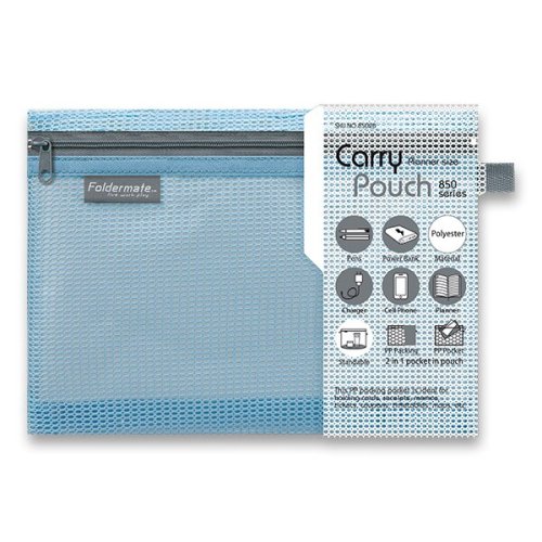 Síťovaná plastová obálka Foldermate Pop Gear pro ukládání dokumentů. Uzavíratelná umělohmotným zipem. Vnější materiál odolná tetoronová síťovina, vnitřní podšívka z voděodpudivého materiálu udrží věci suché. Rozšiřitelná spodní základna zvyšuje kapacitu. Postranní poutko pro uchycení. Formát A5.