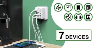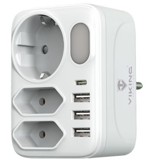 Více energie pro všechny! Viking AC34 - revoluční elektrický rozbočovač, který rozšiřuje standardní zásuvku na další 3 AC 230V výstupy, 3 USB-A výstupy a 1 USB-C výstup. Můžete tak nabíjet až 7 zařízení současně!