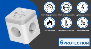 *Elegantní a kompaktní design a provedení *4 AC (230V) výstupy, 3 DC (USB-A) výstupy *Inteligentní čip pro ochranu proti přepětí, přehřátí a přepólování *Nízká hmotnost 300g *Výkon AC zásuvek max. 4000W (230V/16A) *Výkon USB-A 5V/3.1A (total) *Vypínač *možnost nabíjení až 7 zařízení současně