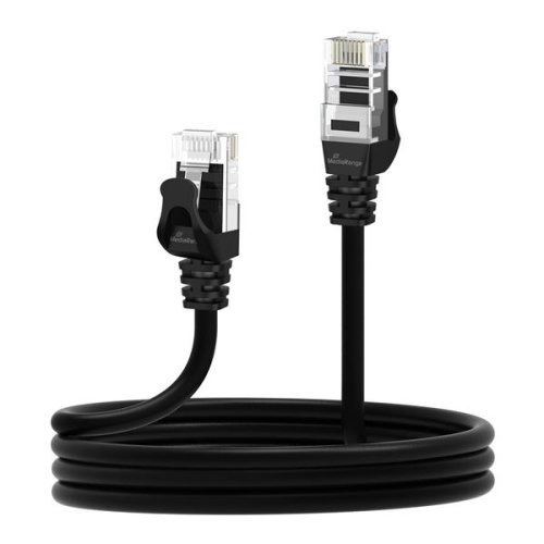 • Černý, 3 m dlouhý síťový kabel MediaRange, UTP CAT 6 (1Gbps), konektor RJ45 se zaklapávacími zámky