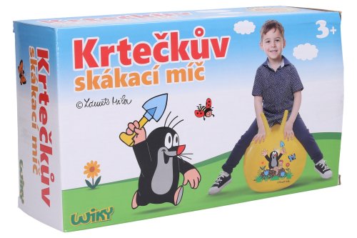 Skákací míč Krtek. Velikost 40 cm. Součástí nožní pumpa. Maximální nosnost 50 kg.