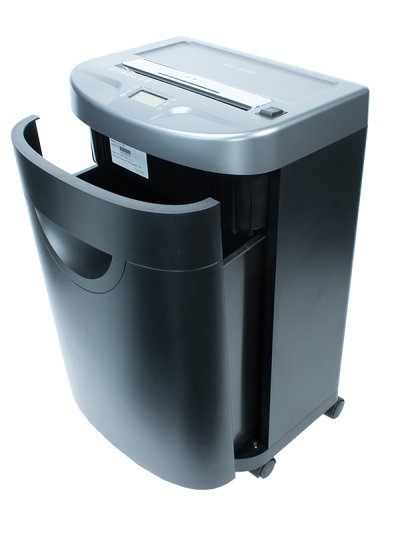 Skartovač vyniká nejen tichým provozem, ale také vysokým uživatelským komfortem. Bezpečnostní systém Safe Touch zajišťuje okamžité zastavení při kontaktu ruky se vstupním otvorem. LCD displej přehledně zobrazuje zapnuté funkce, zatímco kolečka usnadňují přesun zařízení.