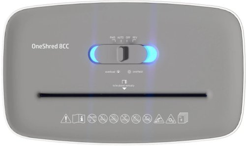 Model OneShred 8CC vám nabízí hned několik praktických funkcí, díky nimž se nemusíte obávat případného zahlcení. Funkce automatického zpětného chodu zabrání zaseknutí papíru nebo karty, zatímco indikátory přehřátí a přetížení vás informují o aktuálním stavu na vstupu přístroje.
