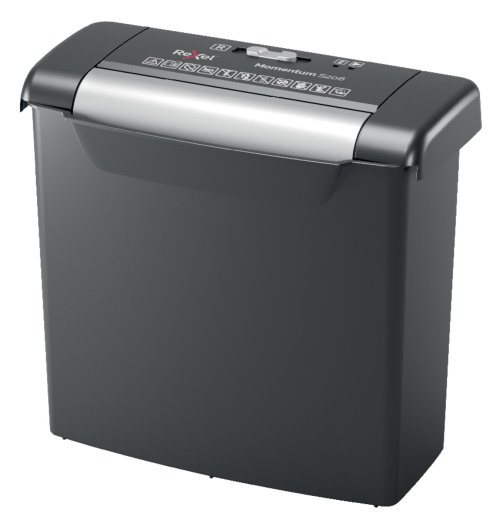 • Nezastavitelná skartovačka! Rexel Momentum S206 skartuje až 6 listů najednou a vydrží v nepřetržitém chodu 2 minuty, vhodná pro domácí použití