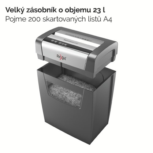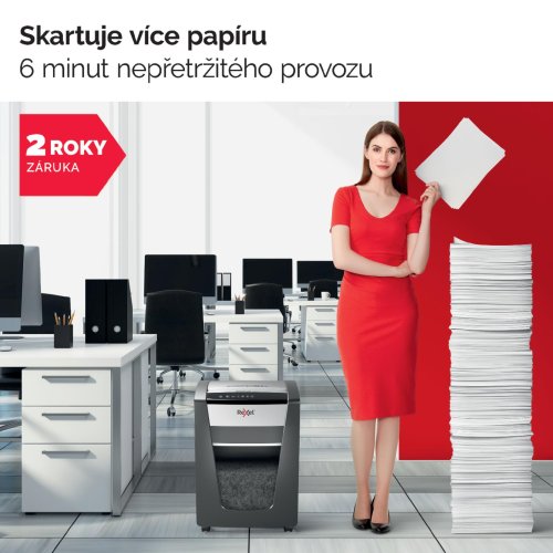 • Nezastavitelná skartovačka! Rexel Momentum X312 skartuje až 12 listů najednou a vydrží v nepřetržitém chodu 6 minut, vhodná pro domácí použití