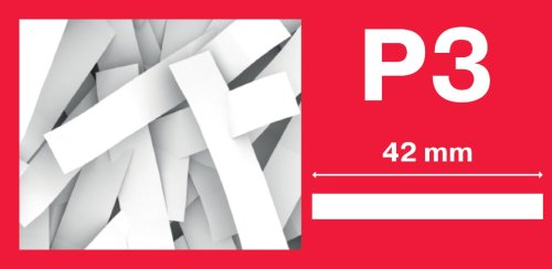 • Křížový řez na úrovni zabezpečení P3 řeže papír na části o velikosti 5x42 mm