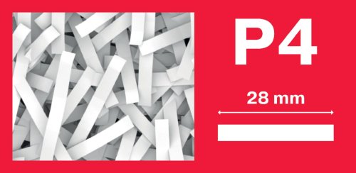 • Křížový řez na úrovni zabezpečení P4 řeže papír na části o velikosti 4x28 mm