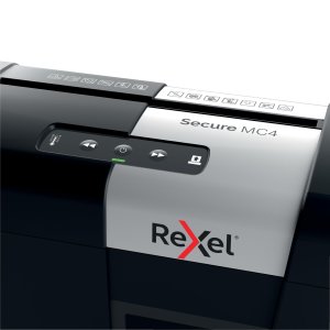 • Skartovačka Secure MC4 skartuje až 4 listy papíru A4 (80 g/m2), vkládané najednou do ručního vstupního otvoru, na dílky s mikro řezem P-5 (2 x 15 mm)