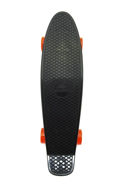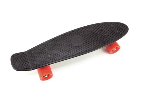 Dětský skateboard - pennyboard pro začínající skateboardisty. Velikost 60 cm. Nosnost 90 kg, kovové osy, černá deska, oranžová kola. Vhodné od 8 let.
