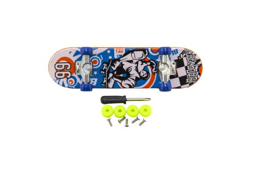 Finger skateboard neboli prstový skateboard má vyměnitelná kolečka. Je ideální svou mini velikostí, lze vzít kamkoli a nikde se nebudete nudit! Rozměr skateboardu: 9 cm Rozměr karty: 12,5 x 17 x 3 cm Vhodné pro děti od 3 let