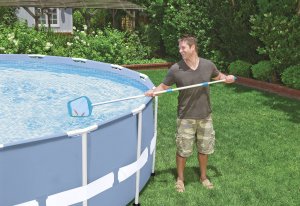 Odstranění nečistoty z povrchu vody v bazénu. Vylepšený design pro snadnější sběr nečistot.Odolná síťovina.Kompatibilní s tyčí 26,2 mm v průměru – položka 29054 – není součástí balení.