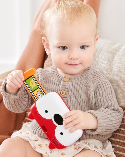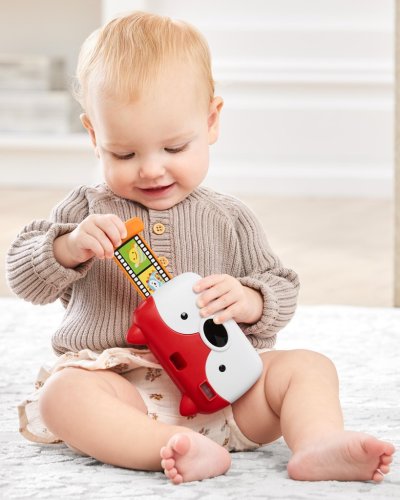 Jedna, dva, tři... řekněte "sýr!" Náš přátelský liščí fotoaparát je vybaven zábavným "filmem", realistickými zvuky závěrky, světly blesku, dětským zrcátkem a dalšími úžasnými funkcemi, které si malí fotografové zamilují! Stačí zmáčknout liščí ucho, aby se začalo fotografovat!