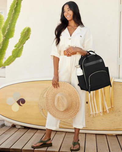 S tímto přebalovacím batohem posunete ekologii na vyšší úroveň a zároveň zůstanete mimořádně stylová. Přebalovací batoh, který to zvládne každý den v týdnu! Díky lehké, ale zároveň mimořádně pevné vnější tkanině, která je vyrobena z recyklovaných PET lahví, pomáhá chránit naši planetu díky recyklaci materiálu. Efektivní a zároveň stylový design ocení všichni rodiče i díky 10 kapsám a snadno přístupné přihrádky na utěrky s magnetickým uzávěrem. Široký otvor a prostorný interiér usnadňují sbalení a uspořádání všech potřebných věcí ať už pro Vás nebo děťátko. Batoh spojuje dokonalou funkčnost s luxusním vzhledem, který se bez problémů přenese do života po narození dítěte. Dostatečně prostorný, aby se dovnitř vešly všechny potřebné věci. Včetně skladné přebalovací podložky.