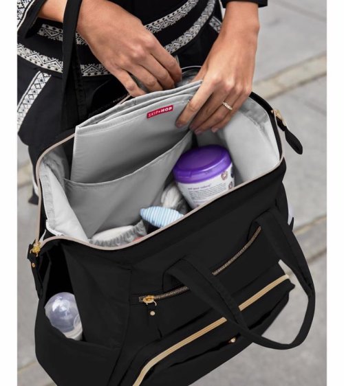 Taška nabízí velkou hlavní přihrádku se zabezpečením na zip a množství kapes pro věci jako je telefon, láhev na vodu a klíče. Díky nastavitelným popruhům lze tašku použít jako batoh, a to maminkám umožní mít volné ruce, což je k nezaplacení.