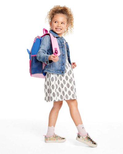 Krásný batoh s motivem motýla. Velikost přesně pro školní učebnice a sešity, psací potřeby, tašku na svačinu a jiné pomůcky. Roztomilý batoh pro velké děti se hodí na vše potřebné, co vaše dítě potřebuje ve třídě i mimo ni. Díky širokému a snadno přístupnému otvoru a průhlednému přednímu kapse je možné zabalit a mít na dosah potřebné věci, zatímco síťovaná kapsa na láhev zajistí, aby byly nápoje po ruce.