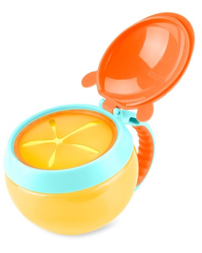 Nádoba má víčko, které po otevření drží, před vysypáním obsahu jej chrání pružné lamely, které pustí dětskou ručičku dovnitř, ale nepustí svačinu ven. Nádoba je průhledná, aby se mohla brzy doplnit. Na boku je praktické ouško v dětském rozměru, pomocí kterého lze nádobu připevnit i na kočárek či tašku.