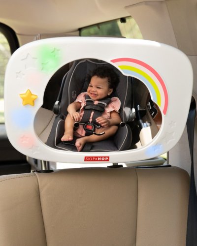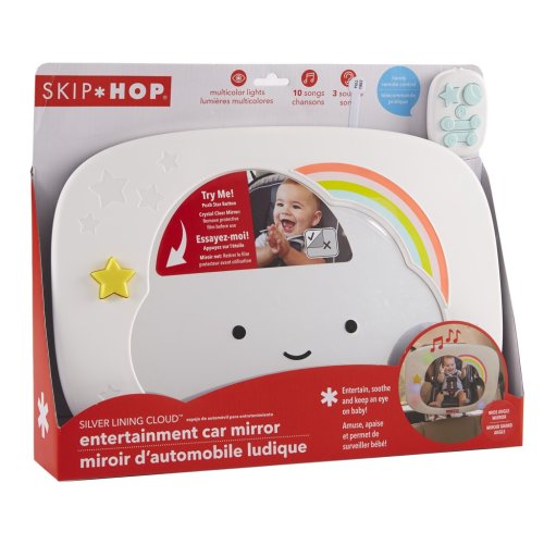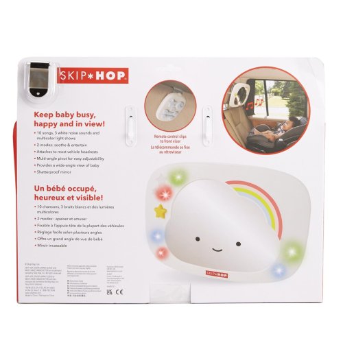 Zabavte, uklidněte a dohlédněte na děťátko s tímto roztomilým dětským zrcadlem na zadním sedadle. Sladký design obláčku s hudbou, zvukem bílého šumu a vícebarevnými světly obsahuje také dálkové ovládání, takže se dá snadno nastavit podle potřeb dítěte v pohodlí a bezpečí.