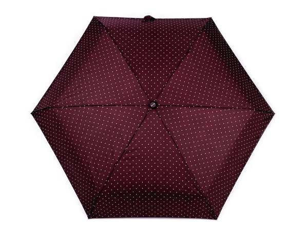 Skládací deštník s puntíky je díky hliníkové konstrukci a malé velikosti lehký a skladný, pohodlně se vám vejde do kabelky. Konstrukce je tvořena šesti poli. Rukojeť deštníku je plastová a opatřená poutkem. Zapínání je klasické na suchý zip. Součástí deštníku je ochranný obal, který se zapíná na zip. Hloubka deštníku je 20 cm. Celková délka je 56 cm. Délka složeného deštníku je 20 cm.