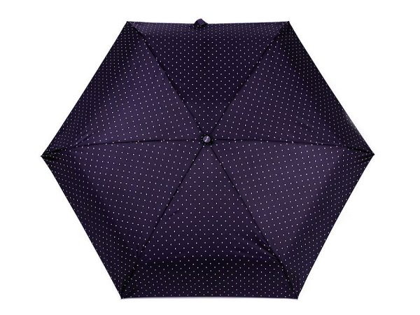 Skládací deštník s puntíky je díky hliníkové konstrukci a malé velikosti lehký a skladný, pohodlně se vám vejde do kabelky. Konstrukce je tvořena šesti poli. Rukojeť deštníku je plastová a opatřená poutkem. Zapínání je klasické na suchý zip. Součástí deštníku je ochranný obal, který se zapíná na zip. Hloubka deštníku je 20 cm. Celková délka je 56 cm. Délka složeného deštníku je 20 cm.