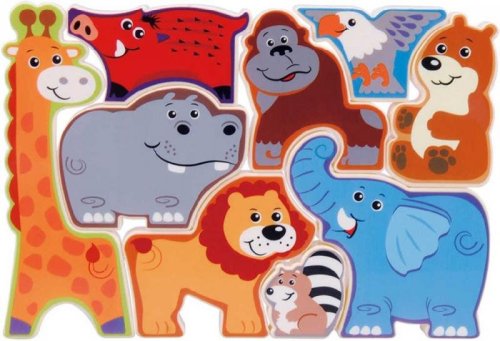 Zvířecí kamarádi jsou vyrobeni z plastu a padnou perfektně do dětských ručiček. Úkolem dětí je zvířata přesouvat, dokud do sebe nebudou všechna zapadat. Pomocníkem může být podkladový obrázek, který je součástí balení. Figurky navíc stojí na zemi, takže si s nimi děti mohou hrát - třeba na zoologickou zahradu.