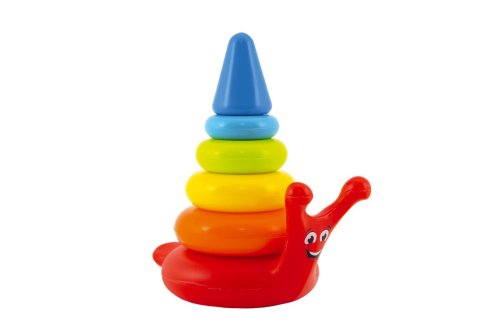 Tato pestrobarevná skládací plastová pyramida v barvách duhy je perfektní hračkou pro ty nejmenší děti. Různobarevné kroužky se na sebe skládají podle velikosti. Motiv šneka. Rozvíjí vizuální stimulaci, motorické dovednosti a koordinaci rukou. Vhodné pro děti od 12 měsíců.