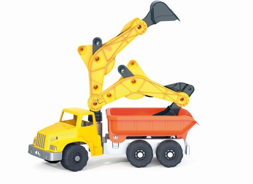 Obří plastové auto nakladač s podkopovou lžicí s ručním ovládaním v hnědé ekologické krabici. Vyrobené z kvalitních plastů v Itálii. Nosnost vozidla max 100 kg. Rozměry balení: 77 x 35 x 48 cm (d x š x v). Váha: 4,35 kg. Doporučený věk od 36 měsíců. Výrobce, italská firma Androni Giocattoli sídlící nedaleko Milána, se specializuje na výrobu plastových hraček na písek a zahradu a také stavebnic UNICO Plus již od roku 1974. Jejím mottem je heslo: Androni Toys: Kvalita vyrobená v Itálii. Používané plasty jsou pevné, ale zároveň pružné a při běžném hraní nedochází k jejich praskání.Vydrží i větší zátěž a proto jsou výrobky vhodné i do školek, kde téměř denně procházejí zatěžkávací zkouškou.