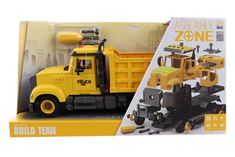 Velká povedená šroubovací sklápěčka. Napájení na 3 AG13 baterie, které jsou součástí balení. Auto má na střeše 4 tlačítka s fukncemi-starkotání, troubení, pípání při couvání a melodie. Šroubovák je součástí balení. Dveře jsou otevíratelné, sklápění fuknční. Materiál plast. Baleno v otevřené krabici. Rozměry balení cca 41x22x13 cm. Rozměry auta 37x14x11 cm. Věk 3+