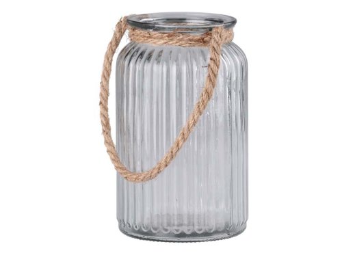 Kompaktní a nadčasová – taková je skleněná lampa s rozměry 11 × 10 cm. Závěs z přírodního lana jí dodává rustikální kouzlo, zatímco čisté čiré sklo podtrhuje jednoduchost a eleganci. Můžete ji využít jako závěsnou lucernu na balkon, ale i jako interiérovou dekoraci s jemným osvětlením.