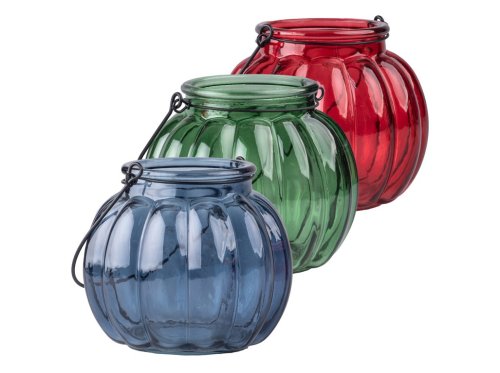 Tato skleněná lucerna v mixu barev (červená, zelená, modrá) je praktickým a dekorativním doplňkem pro interiér i exteriér. Vytváří útulnou atmosféru a je vhodná pro umístění čajových svíček či LED svíček.