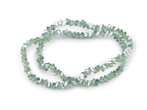 Skleněné broušené korálky triangl se vyznačují precizním broušením, které jim dodává jedinečný lesk a zajímavý tvar. Vynikají především svým třpytem. Jsou vhodné pro precizní práci při tvorbě šperků. Využijete je na ketlování, do šitých šperků, na drátování, paměťové náramky apod. Jsou také vhodné pro použití v různých hobby projektech, kde mohou posloužit jako detailní ozdoba. 1 sáček obsahuje cca 130 ks korálků navlečených na jemném drátku. Návlek je dlouhý cca 29 cm. Hmotnost sáčku i s korálky je 18 g.