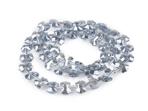 Skleněné broušené korálky mašličky jsou velice zajímavé svými třpytivými odlesky i tvarem. Jsou navlečené na drátku a zkombinované s hladkými tyčkami dlouhými 6 mm. Využijete je na ketlování, do šitých šperků, na drátování apod. Jsou také vhodné pro použití v různých hobby projektech, kde mohou posloužit jako detailní ozdoba. Jejich luxusní vzhled oceníte při tvorbě náušnic, náhrdelníků i náramků. Budou úchvatné i jako detail na prstýnku. 1 sáček obsahuje cca 50 ks mašliček a 50 ks tyček navlečených na jemném drátku. Návlek je dlouhý cca 47 cm. Hmotnost sáčku i s korálky je 18 g.