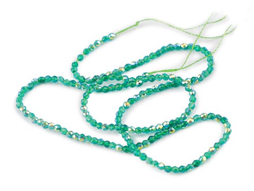 Skleněné korálky broušené ohňovky 2 mm s AB efektem, na šňůrce - zelená smaragdová AB (10 sáček)