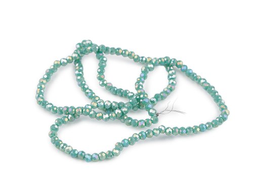 Skleněné korálky broušené ohňovky 3 mm na drátku - zelená šalvěj tmavá AB