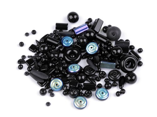 Skleněné korálky ramš mačkanice - černá (50 g)