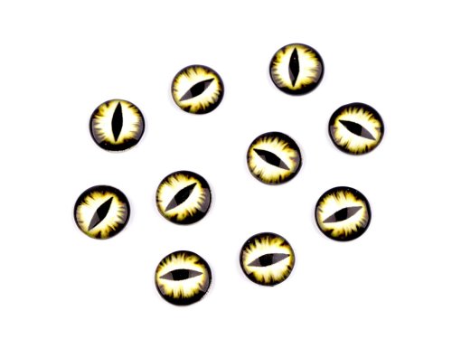 Skleněné oči k nalepení kočka, drak Ø10 a 12 mm - (10 mm) žlutá světlá (10 ks)