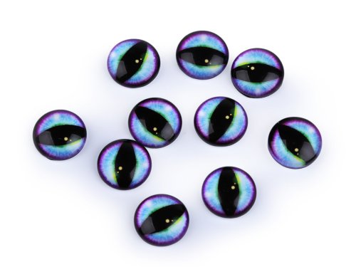 Kulaté skleněné oči s motivem kočičího / dračího oka mají kvalitní zpracování. Díky tvaru vypouklé čočky obrázek oka krásně vynikne. Využijete je na tvorbu různých postaviček a zvířátek. Pro jejich přilepení je vhodné použít lepidlo na lepení kamínků. S oblibou se používají i na výrobu bižuterie, jako kabošony jsou vhodné k nalepení do kovového lůžka nebo k obšití korálky a rokajlem. Velice působivé jsou v drátovaných špercích.